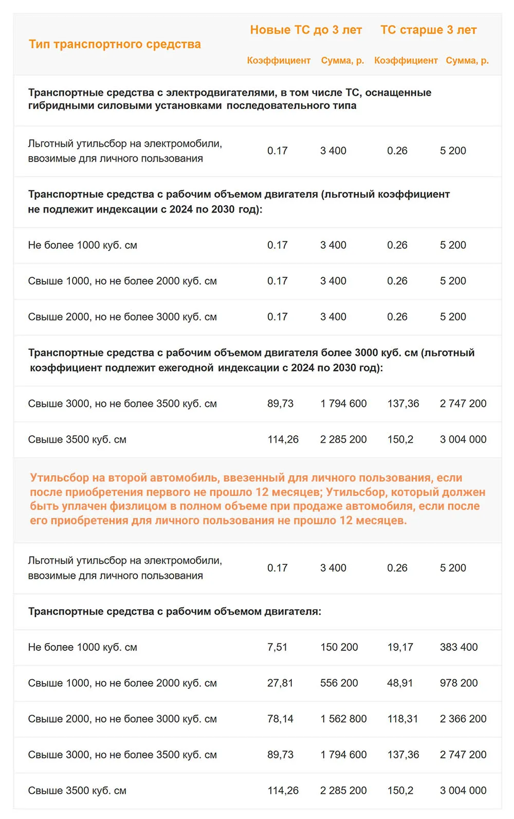 Если вы приобретаете и ввозите подержанную машину из другой страны, например Японии, Кореи или Америки для личного использования, то утилизационный сбор будет исчисляться по льготному тарифу. Это правило действует с 2024 года.