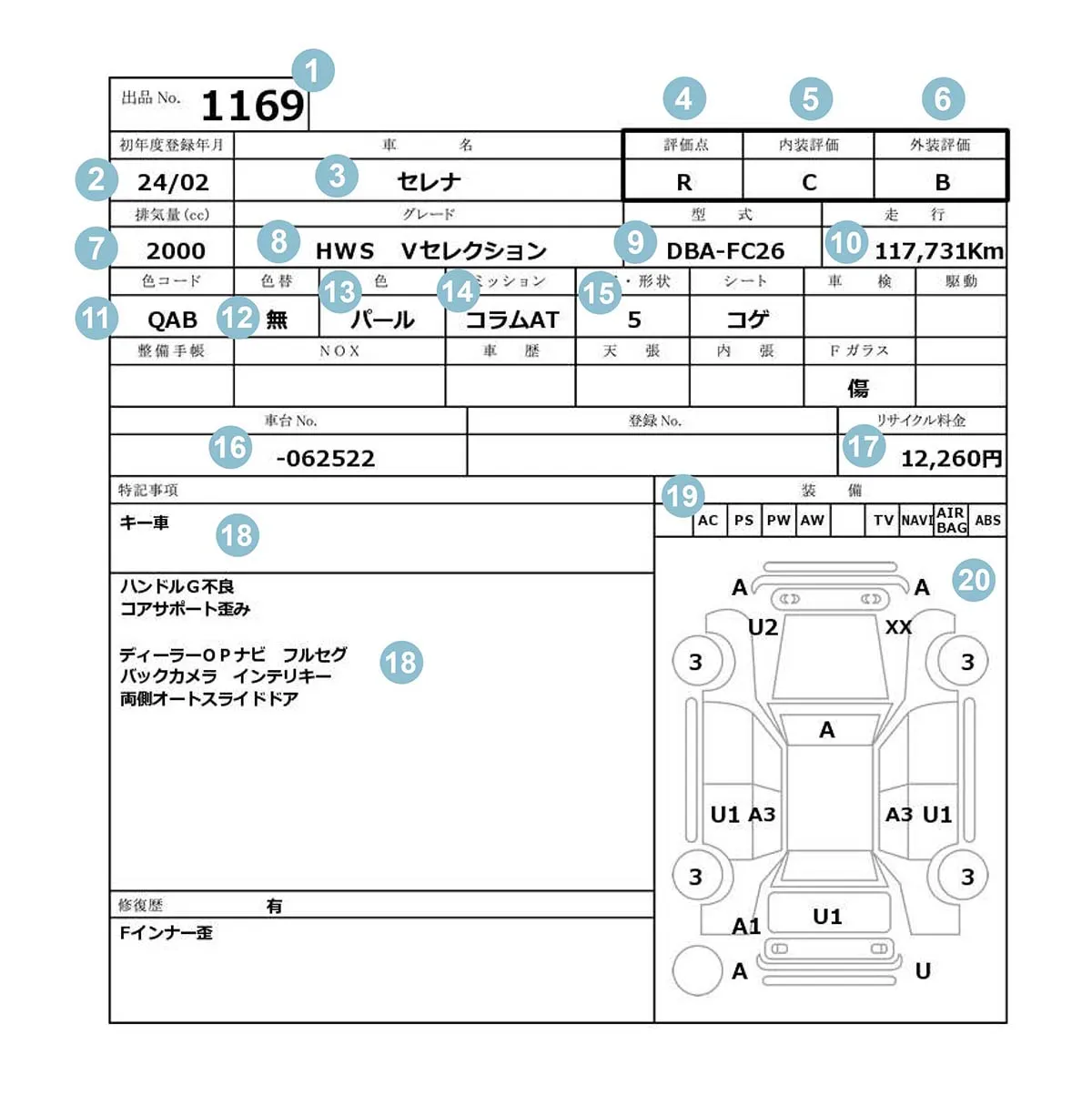 Аукционный лист японского авто является важной составляющей. Он отображает техническое состояние, наличие повреждений в ДТП, царапин, номер и тип кузова, пробег на момент продажи, баллы за общее состояние транспортного средства, кузова, салона, наличие или отсутствие действующего техосмотра и другие аспекты.